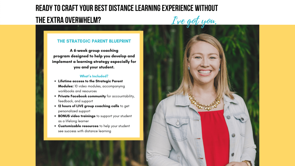 A 6-week group coaching program designed to help you have the best distance learning experience by making learning visible, opening lines of communication, and empowering your student to self manage their learning.